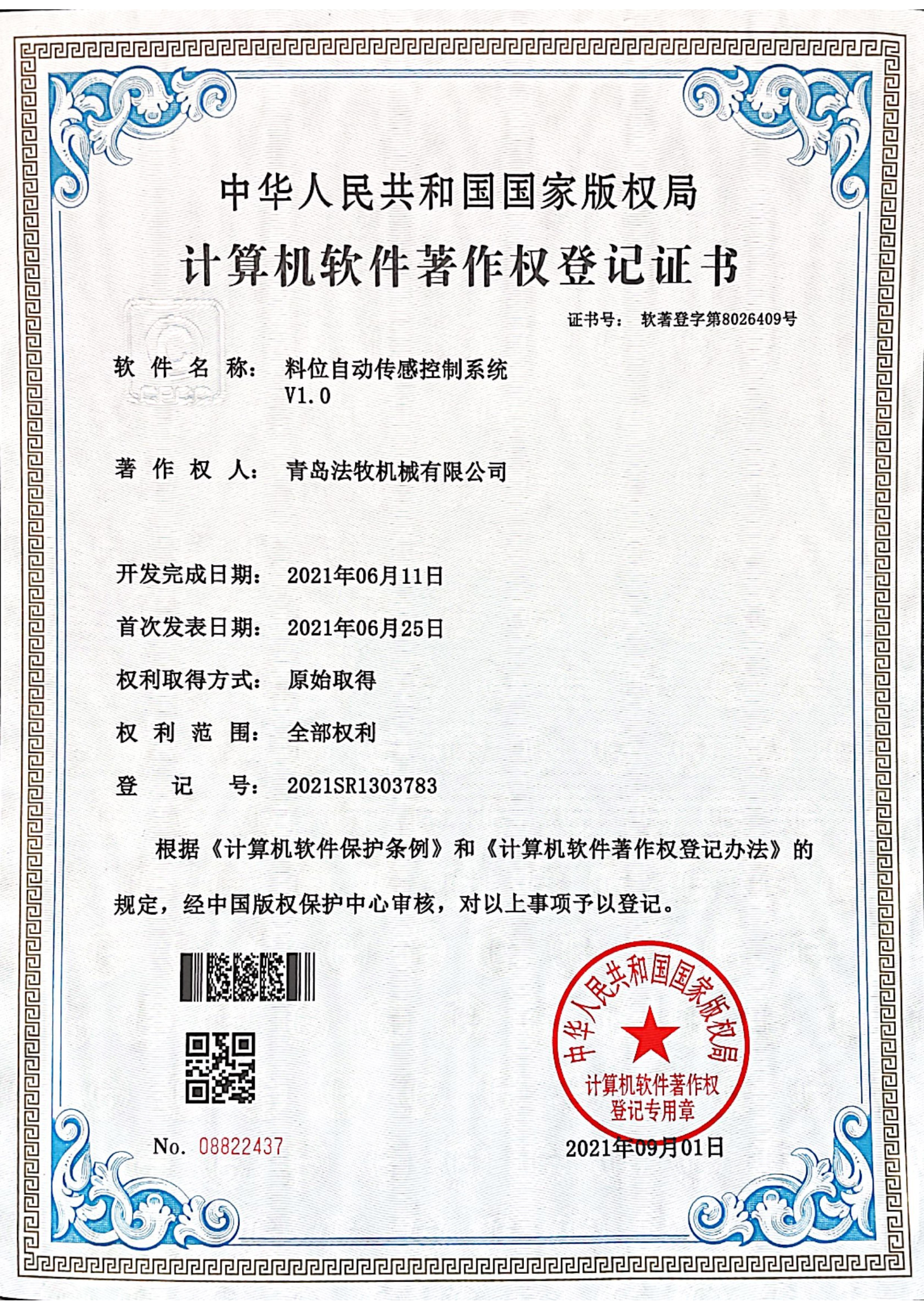 多年來,青島法牧先后獲得“國家級高新技術企業(yè)”、“青島市專精特新中小企業(yè)”、“青島市科技型中小企業(yè)”“雛鷹企業(yè)”等多項榮譽,并取得多項專利及研發(fā)成果。